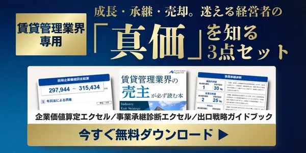 自社の管理戸数やオーナー属性が市場でどう評価されるのか、正確な価値を知りたい方は、まずは船井総研あがたFASの無料企業価値診断をご利用いただくか、賃貸管理業界特化のM&Aレポートをダウンロードしてご確認ください。