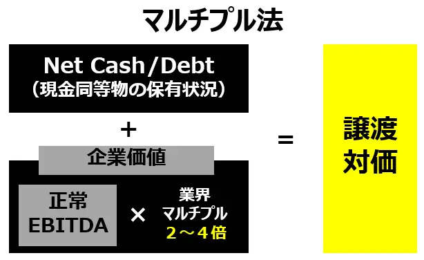 Net Cash/Debt+(正常EBITDA×2~4)=譲渡対価