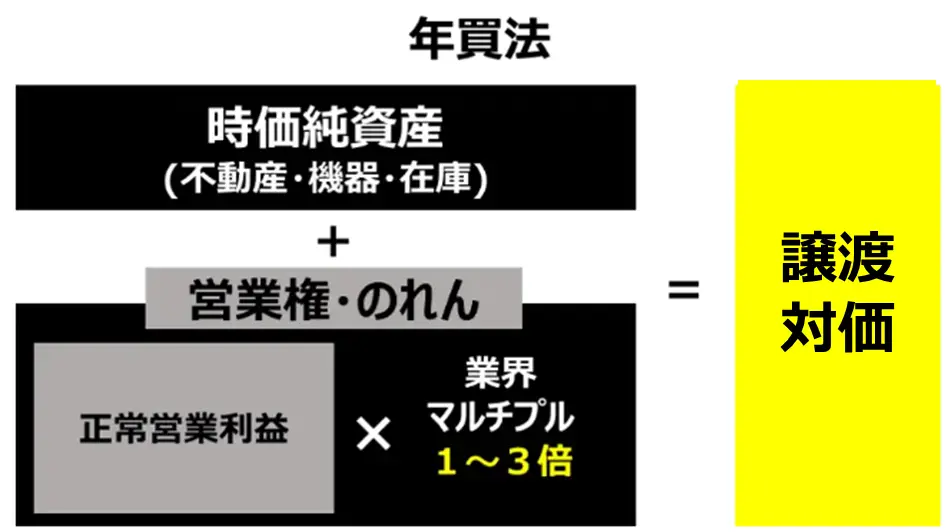 時価純資産+(正常営業利益×1~3)=譲渡対価