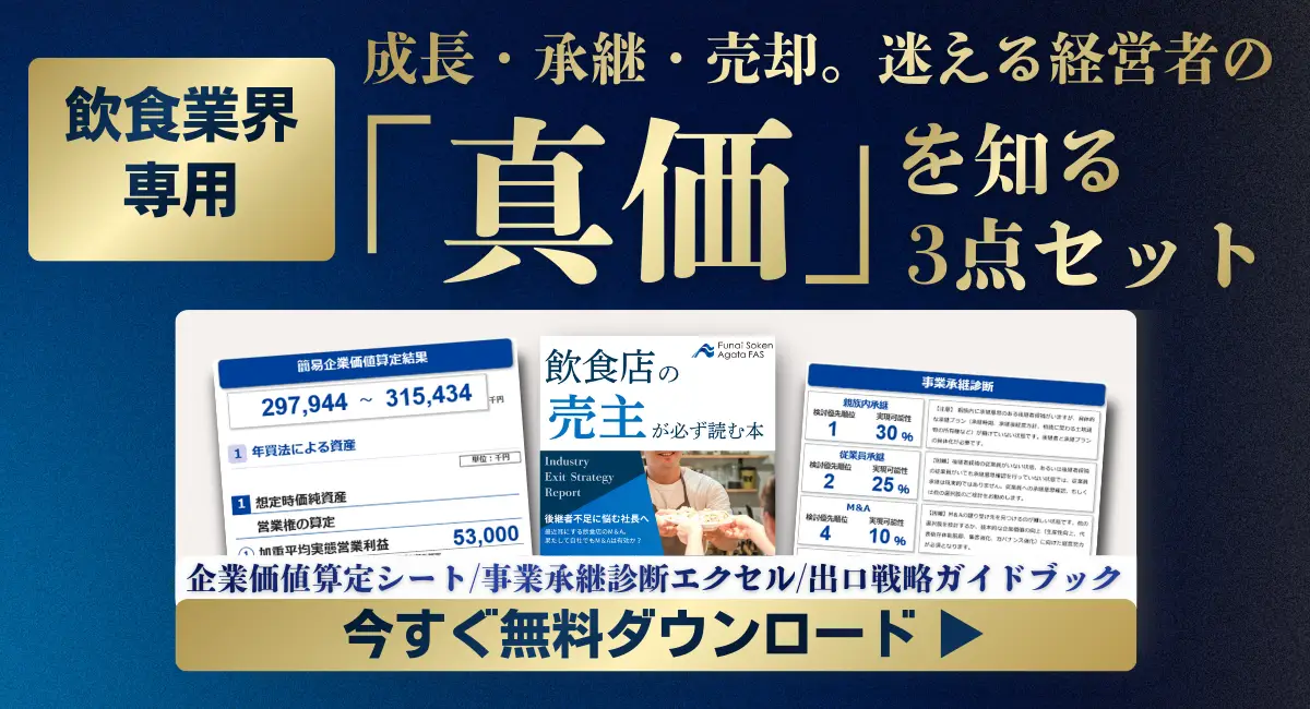 飲食業における譲渡(売却)の価値算定でお悩みの方は、まずはあなたの業界に特化したM&A・事業承継の資料をダウンロードするか、一度当社の業界特化のコンサルタントにご相談ください。