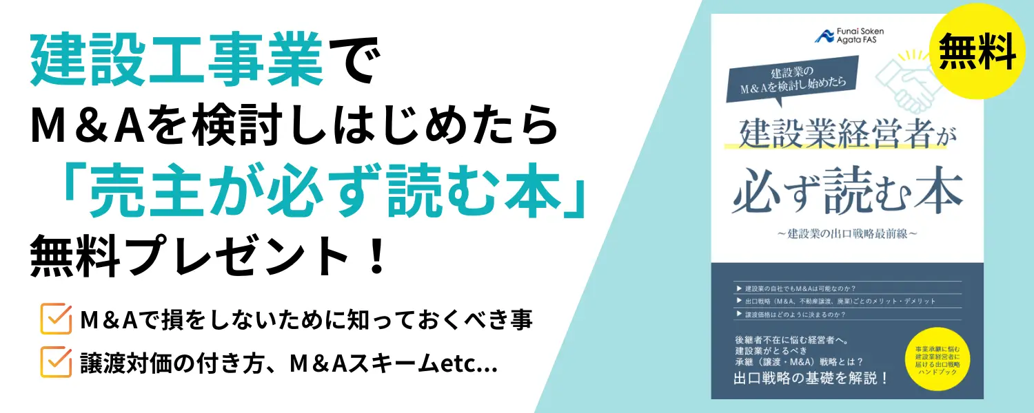 建設・工事業専門コンサルタントが作成した、M&Aを検討し始めたら譲渡主がまず読む本は、下記からダウンロードいただけます。