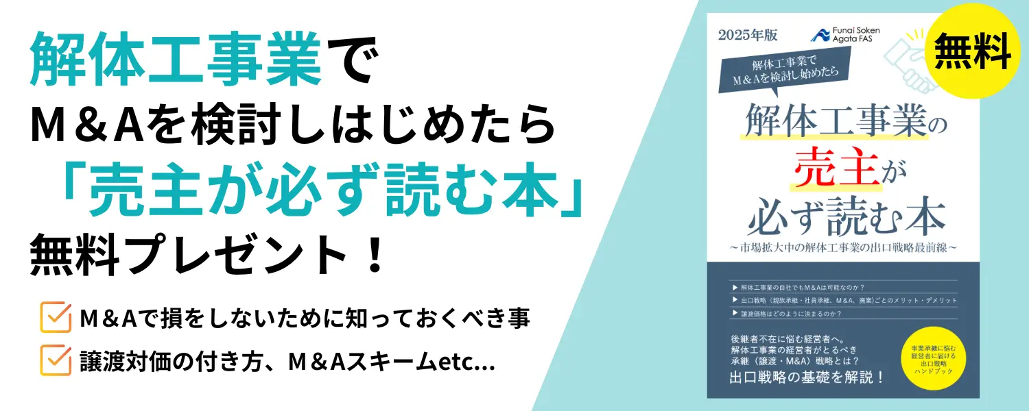 解体工事業専門コンサルタントが作成した、M&Aを検討し始めたら譲渡主がまず読む本は、下記からダウンロードいただけます。