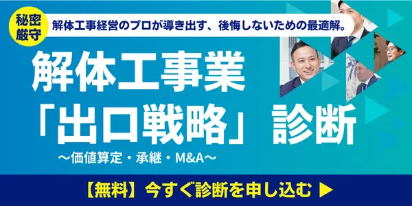 解体工事業のM&Aに関するより詳しい情報は、下記の記事をご参照ください。