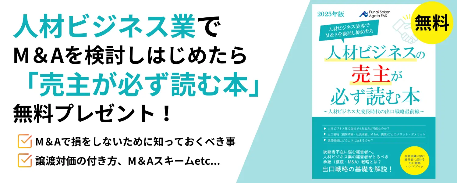 人材ビジネス業専門コンサルタントが作成した、M&Aを検討し始めたら譲渡主がまず読む本は、下記からダウンロードいただけます。
