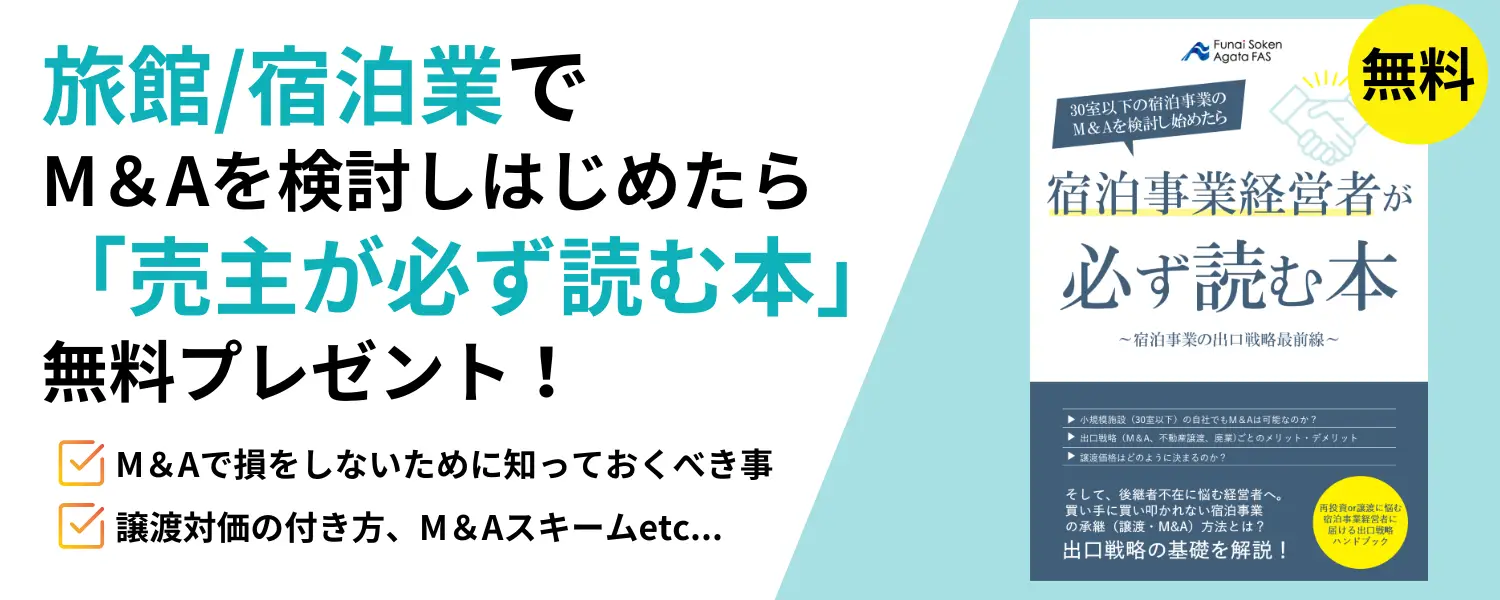旅館専門コンサルタントが作成した、M&Aを検討し始めたら譲渡主がまず読む本は、下記からダウンロードいただけます。