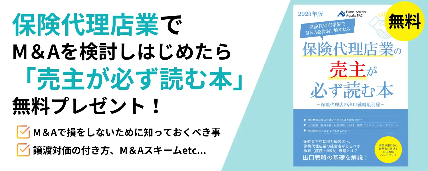 ・自分も高齢になって、そろそろ引退を考えたいが、資格者の後継者がいない。・会社を第三者に承継したいが、どのような選択肢があるのか分からない。・保険代理店を売却できるという話を聞いたが自分の会社も売却できるか、また、条件等を知りたい。・自分はまだ働けるが、経営は第三者に譲りたい。・50代で、今すぐ承継したいわけではないが、後継者がいないので、今後の選択肢を知っておきたい。保険代理店業専門コンサルタントが作成した、M&Aを検討し始めたら譲渡主がまず読む本は、下記からダウンロードいただけます。