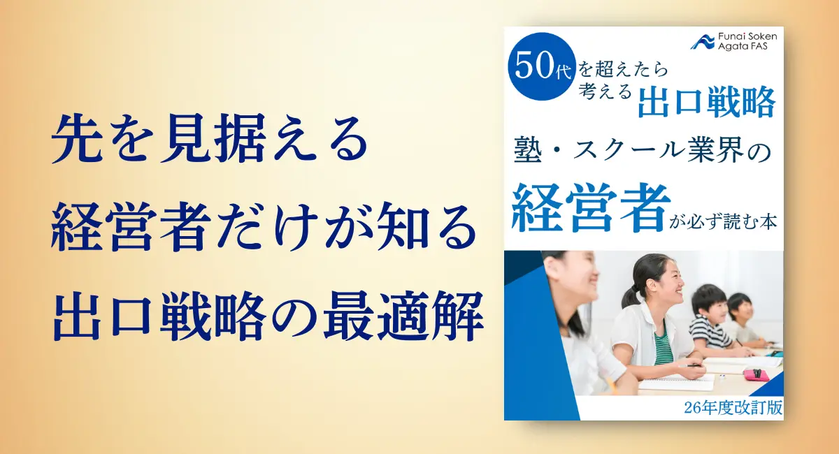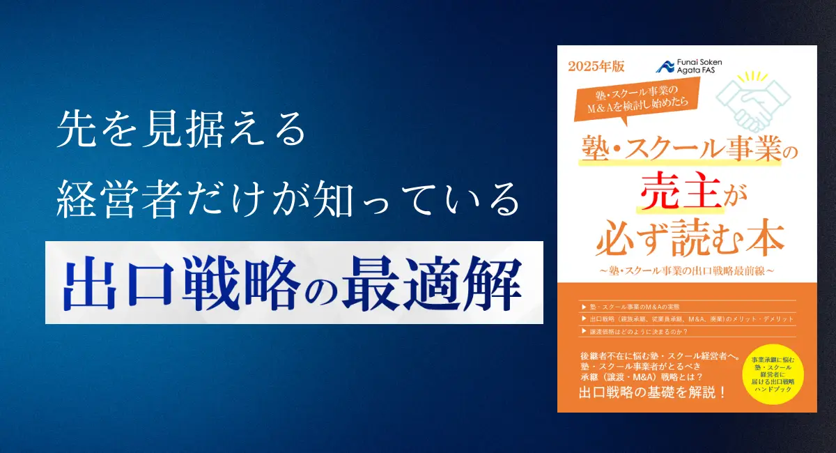 塾・スクール事業の経営者に届ける出口戦略本。塾・スクール事業の出口戦略を考え始めたら、まず読んでいただきたいはじめの一歩本