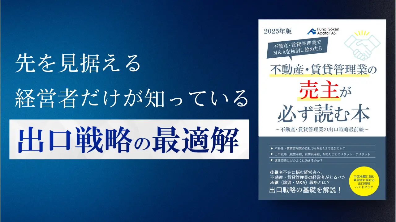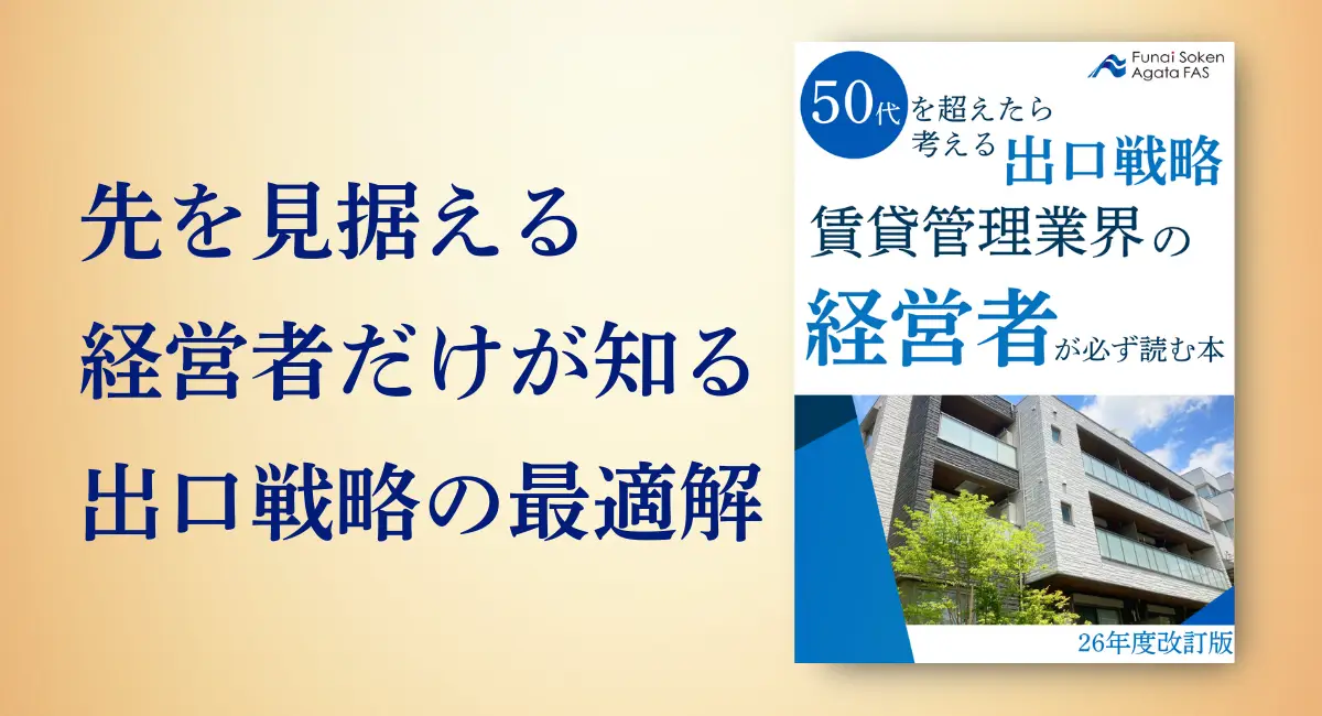 不動産・賃貸管理業の経営者に届ける出口戦略本。不動産・賃貸管理業の出口戦略を考え始めたらまず読んでいただきたいはじめの一歩本