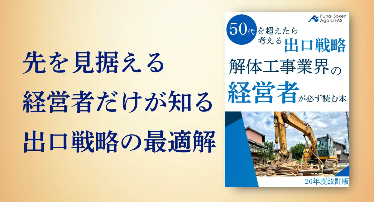 解体工事業の経営者に届ける出口戦略本。解体工事業の出口戦略を考え始めたらまず読んでいただきたいはじめの一歩本