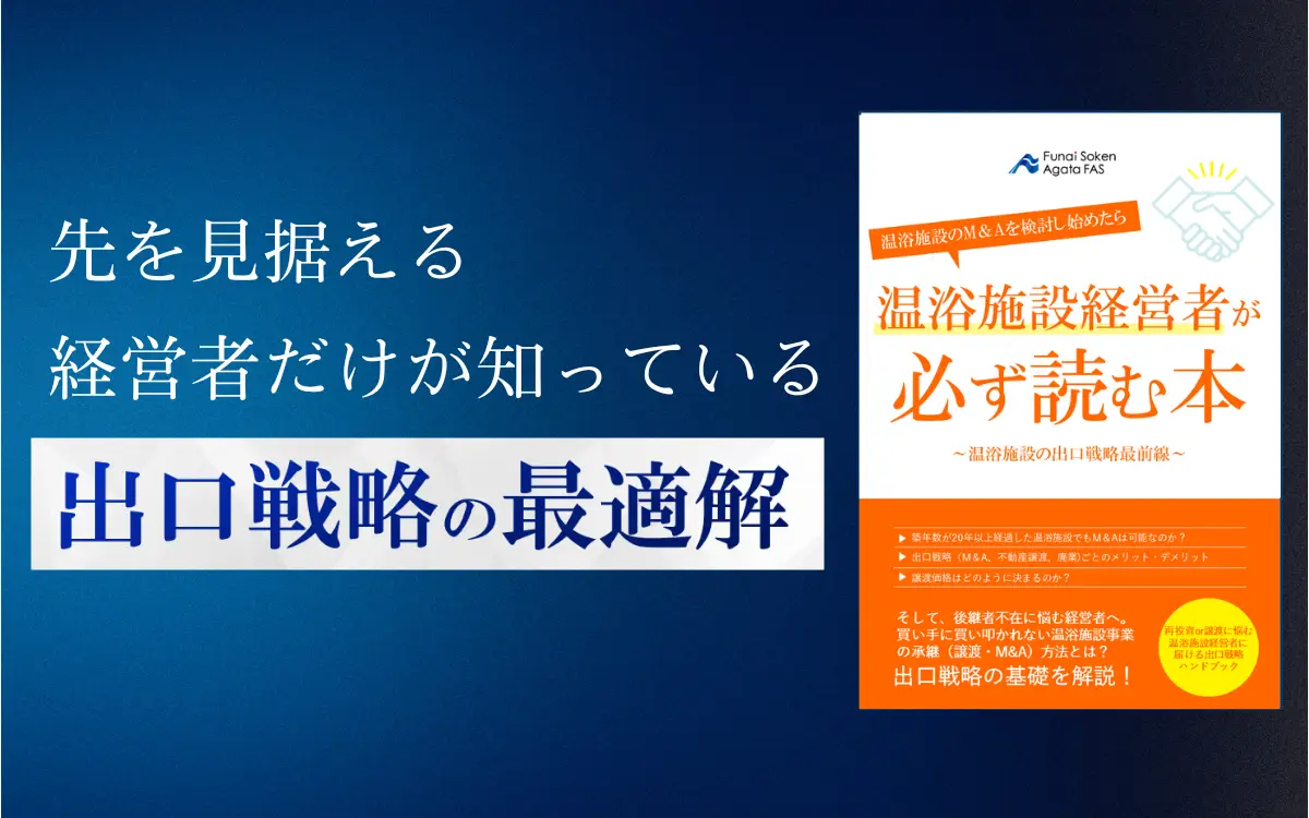 温浴施設の経営者に届ける出口戦略本。築年数20年以上の温浴施設でもM&Aは可能なのか。