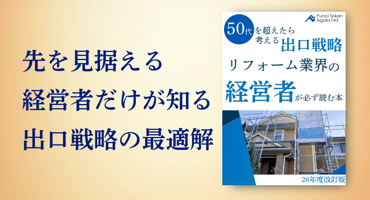 住宅・リフォーム業の経営者に届ける出口戦略本。住宅・リフォーム業の出口戦略を考え始めたらまず読んでいただきたいはじめの一歩本