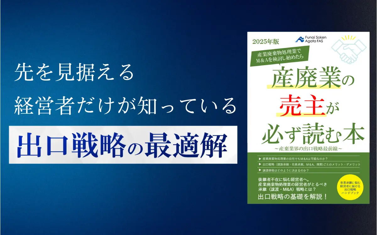 産業廃棄物処理業の経営者に届ける出口戦略本。産業廃棄物処理業の出口戦略を考え始めたらまず読んでいただきたいはじめの一歩本