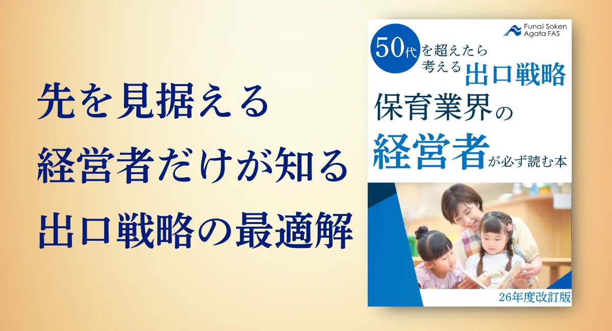 保育園・幼稚園・こども園の経営者に届ける出口戦略本。保育園・幼稚園・こども園の出口戦略を考え始めたら、まず読んでいただきたいはじめの一歩本