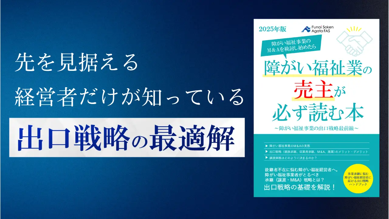 障がい福祉業界の経営者に届ける出口戦略本。障がい福祉事業の出口戦略を考え始めたら、まず読んでいただきたいはじめの一歩本