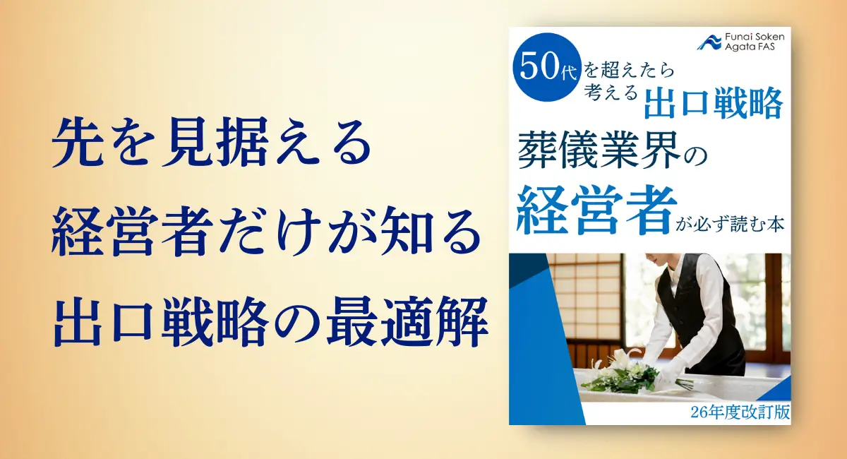 葬儀業の経営者に届ける出口戦略本。葬儀業の出口戦略を考え始めたらまず読んでいただきたいはじめの一歩本