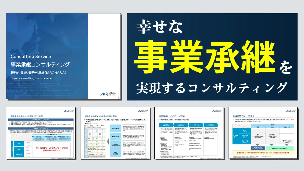 舩井総研あがたFASの、事業承継コンサルティングの概要書です。