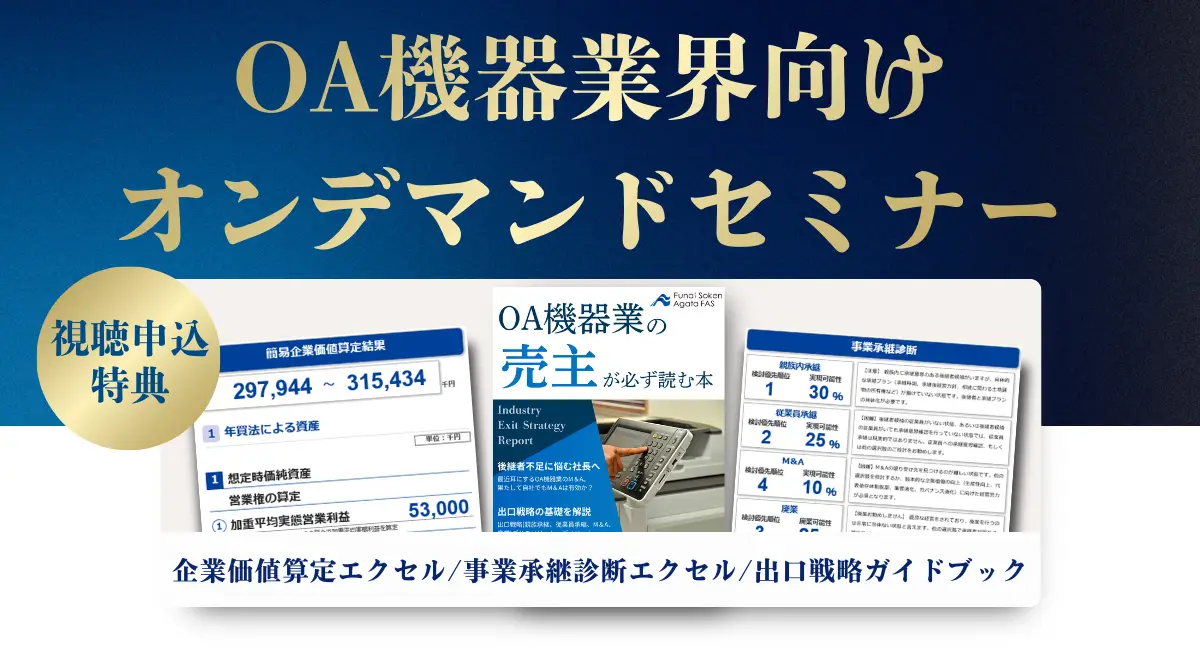 今、地域密着で顧客基盤を築いてきた多くのOA機器販売店経営者が、目に見えない「業界再編の荒波」に直面しています。船井総研グループが、事務機業界特有の商習慣を踏まえた「出口戦略」と「生き残りの正体」を、期間限定のオンデマンド映像で特別公開いたします。